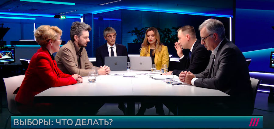На трансляции в ходе диалога присутствовали Иван Жданов, директор ФБК и Максим Кац, одни из самых важных представителей российской оппозиции. Их участие в обсуждении выборов уникально тем, что участники «Фонда борьбы с коррупцией» и Кац длительное время находятся в конфликте.