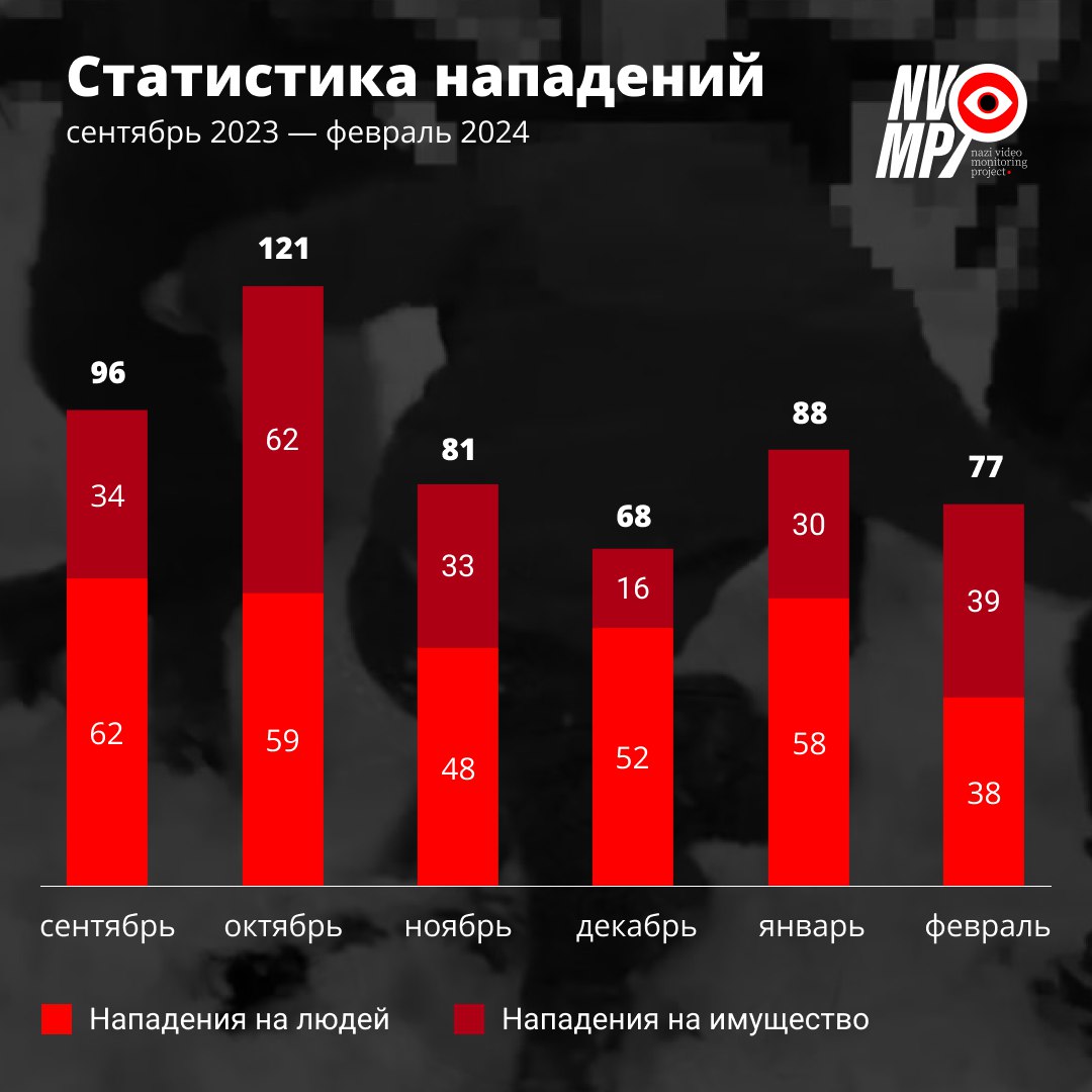 За февраль 2024 года было зафиксировано 57 видеозаписей, документирующих 77 случаев нападения, включая 38 нападений и 39 случаев порчи имущества. Это отражает некоторое снижение частоты инцидентов в сравнении с предыдущим месяцем.