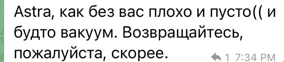 Создательница и главред ASTRA Анастасия Чумакова объявила, что издание возвращается к работе.