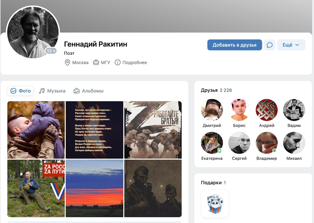Страница «Геннадия Ракитина». Скриншот из VK