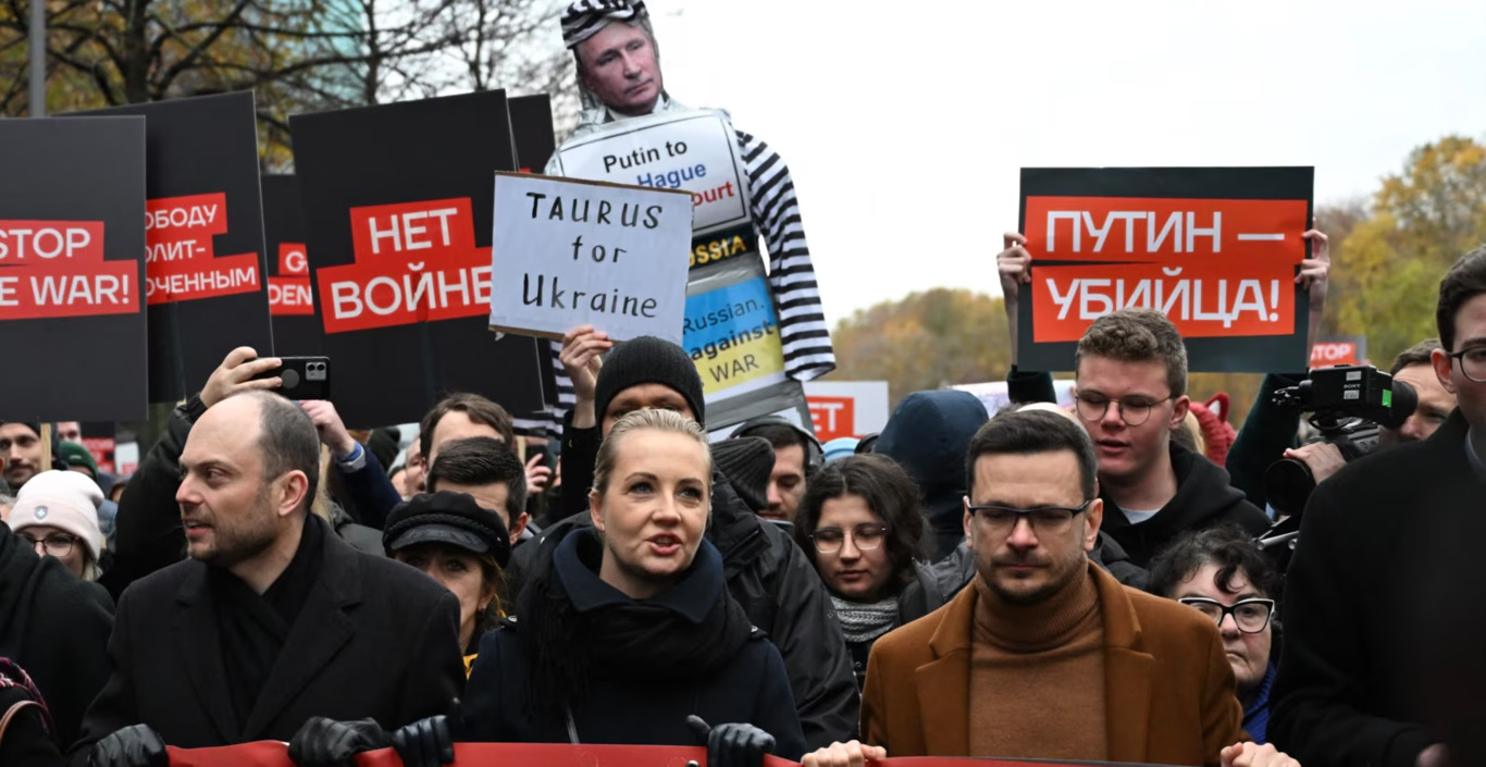 17 ноября в Берлине состоялся антивоенный марш, организованный российскими оппозиционерами Ильей Яшиным, Юлией Навальной и Владимиром Кара-Мурзой. Около 2–3 тысяч человек, по разным оценкам, собрались в парке Генриетты Герц и прошли к зданию российского посольства. Участники требовали вывода российских войск из Украины, суда над Владимиром Путиным как военным преступником и освобождения политзаключённых.