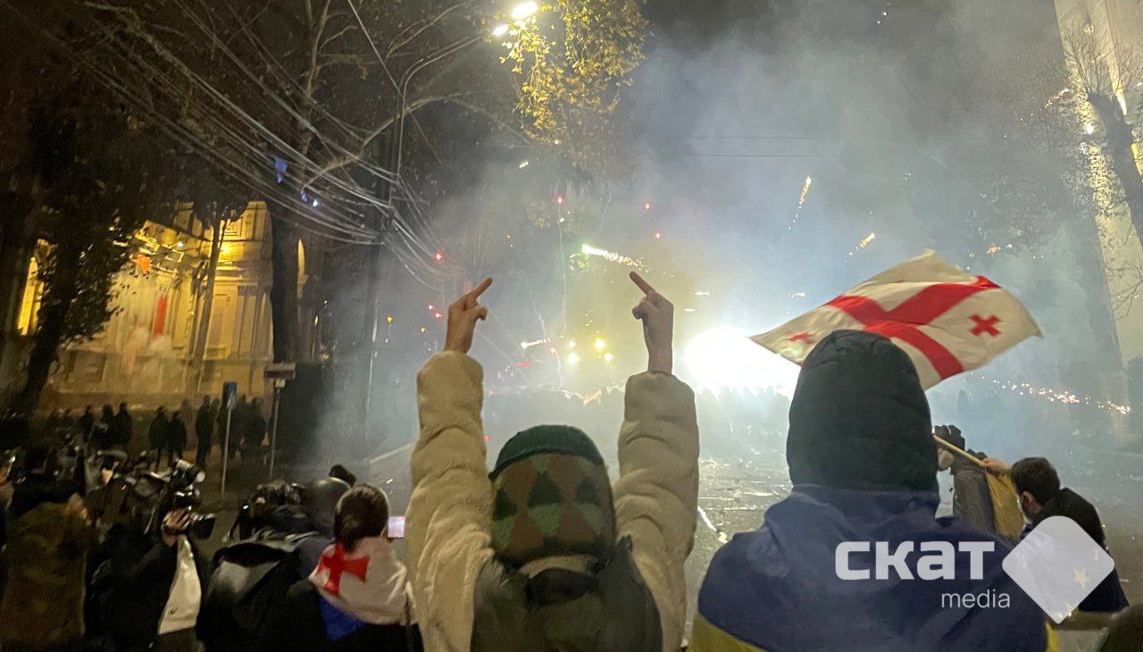 Акция протеста в Тбилиси в ночь с 30 ноября на 1 декабря 2024 года. Фото: Полина Тенглин / Скат media