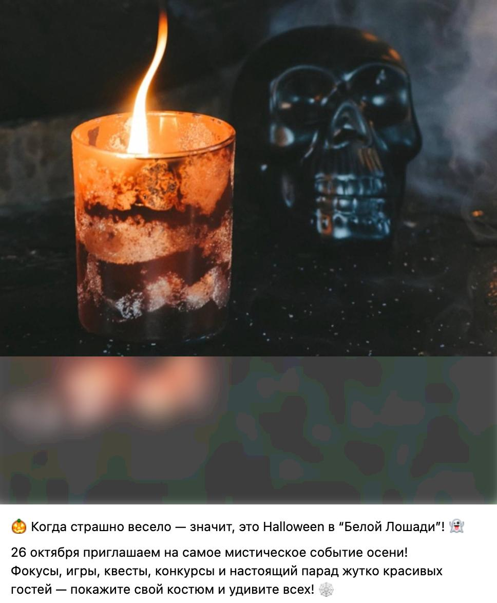 Общественника возмутила реклама детских праздников, приуроченных к Хэллоуину, в «Парке Сказов», караоке-баре «Черничные ночи» и клубе «Белая лошадь». Анонсы этих мероприятий Мелёнкин нашёл в VK.