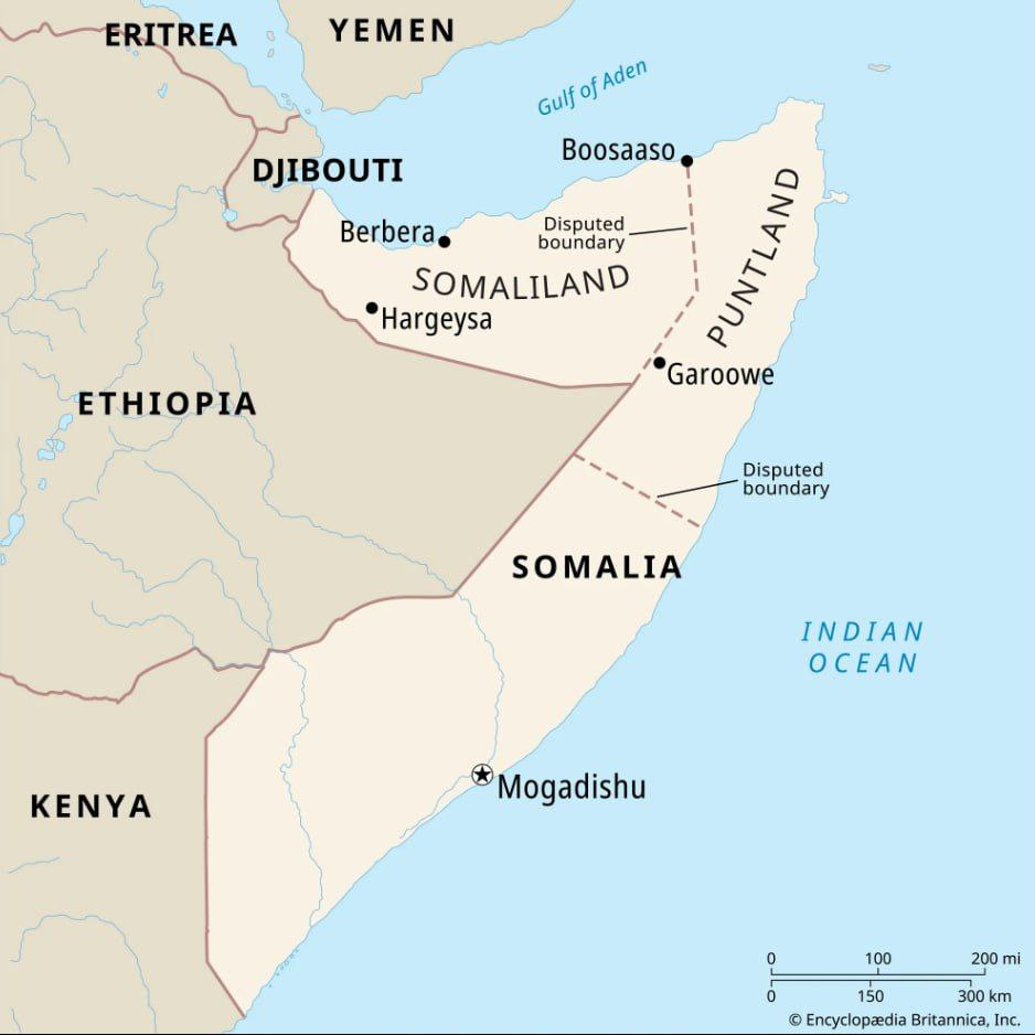 Самопровозглашённая Республика Сомалиленд появилась в 1991 году на территории бывшей британской колонии Сомалиленд в ходе гражданской войны против сомалийского диктатора Сиада Барре. В регионе живут шесть миллионов человек, он имеет собственную полицию, валюту и паспорта. Международно признанная территория Сомали охватывает всё побережье «Африканского рога», но в реальности федеральное правительство контролирует лишь малую её часть. Север находится под контролем двух сепаратистских образований — Сомалиленда и Пунтленда.