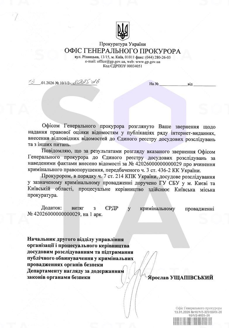 Волкову могут вменить статью об «оправдании российской военной агрессии» (ч. 3 ст. 436-2 УК Украины).