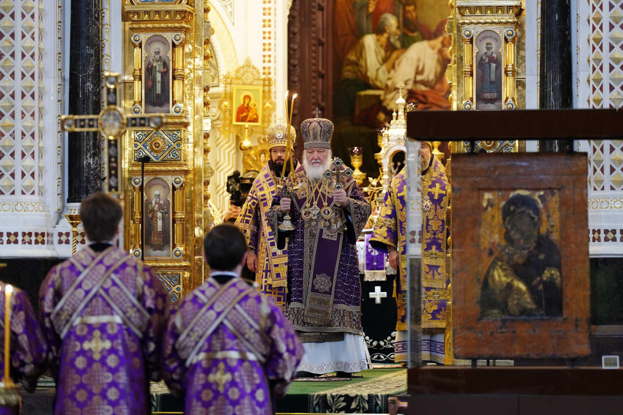 Владимир Гундяев во время литургии в Храме Христа Спасителя 9 апреля 2026 года. Фото: Русская православная церковь