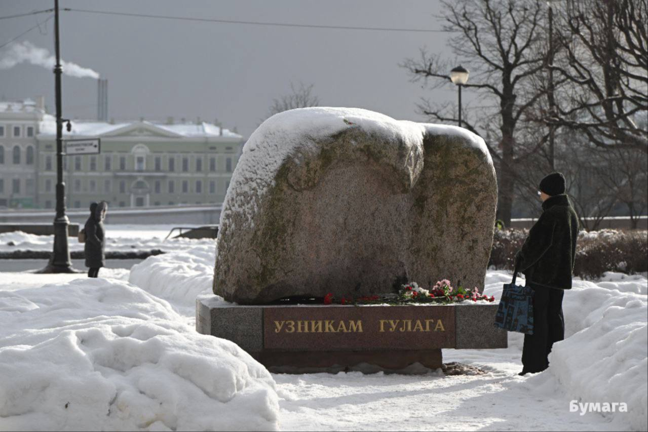 В Санкт-Петербурге мемориал жертвам политических репрессий на Воскресенской набережной огородили сетчатым забором и поставили кран, предположительно, для создания видимости «проведения работ», сообщило издание RusNews. При этом рядом дежурили трое полицейских. В итоге в Петербурге люди начали приносить цветы к Соловецкому камню. На Воскресенской набережной силовики задержали молодого человека, который сфотографировал огороженный мемориал жертвам политических репрессий. Позже его отпустили без протокола, сообщили журналисты RusNews.